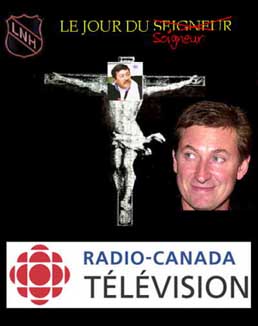 (Mars 2005) La Société Radio-Canada a annoncé hier soir que l'émission Le Jour du Seigneur, qui était présentée le dimanche matin depuis des lustres à son antenne, prendra une toute nouvelle orientation. La direction de la société a affirmé vouloir " suivre les tendances " et présentera à partir de la semaine prochaine, à la même heure, une nouvelle version de l'émission, qui s'appellera Le jour du soigneur. En fait, cette émission sportivo-spirituelle portera sur la véritable religion des Québécois : le hockey.